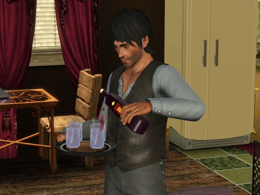 He sat at the bar. I figured that he had enough drinks at home, but I guess they just did not hit the spot.