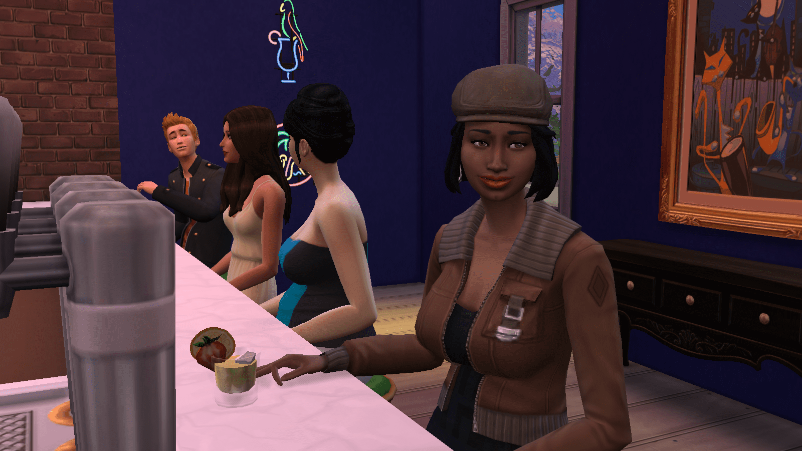 Mitzi attempts to make small talk with a lady at the bar but is quickly bored with the conversation. It’s time to find something else to do…