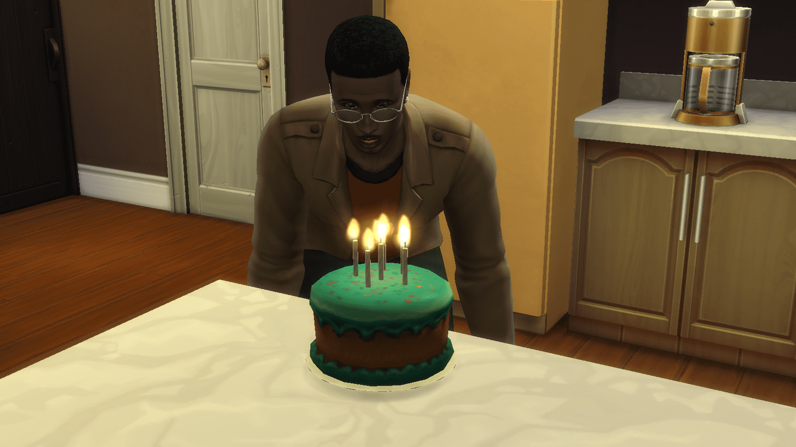 It’s Ray’s birthday! He starts the day off by cooking breakfast, although he should really be taking a shower. He’s looking a bit grungy.