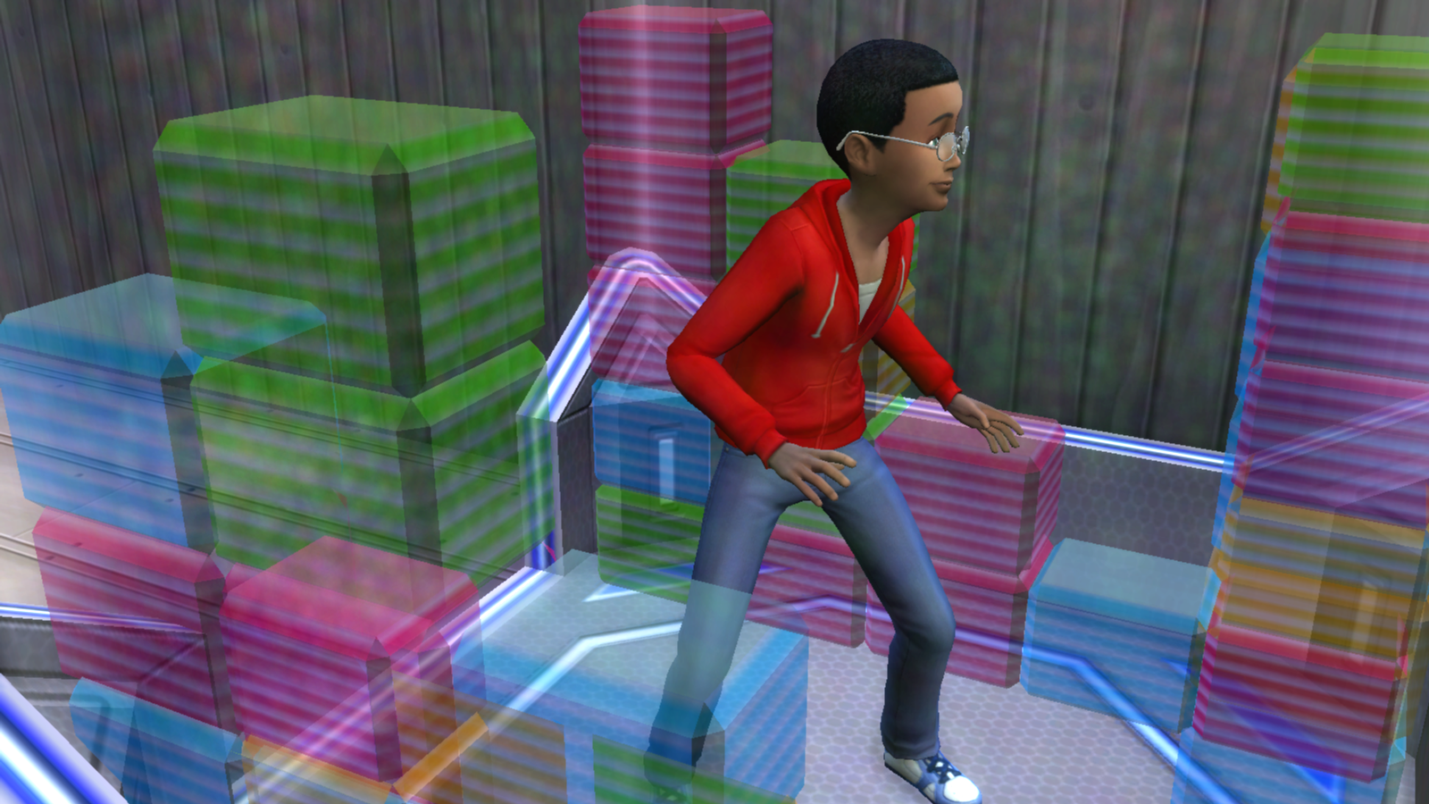 Meanwhile, Greg is in My Sims heaven…or is it the trucks that have captured his attention?