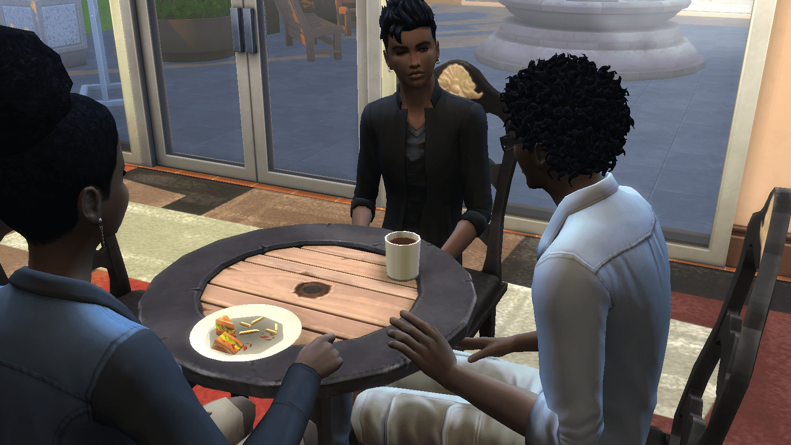 Kisha decides that the coffee shop would be a great place for the three of them to sit down and talk.