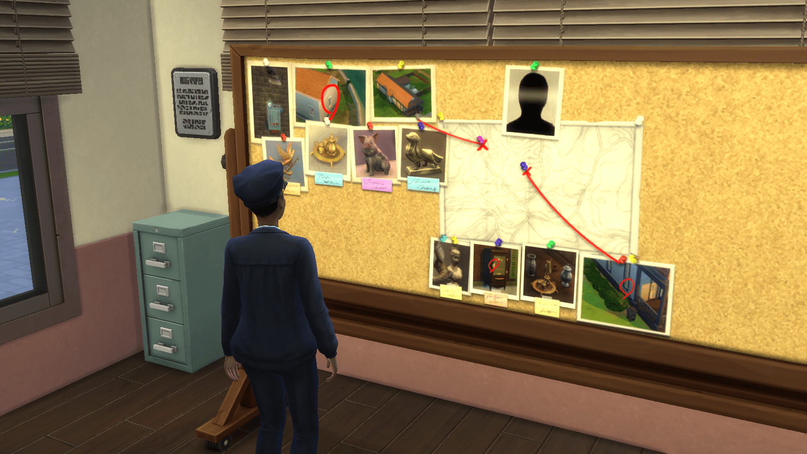 Unfortunately, the witness didn’t have much info on what the perpetrator looked like, but Kisha found a lot of evidence and was able to get some information from a few of the officers who were already investigating the scene. Back at the station, Kisha adds new clues to the crime board. From the clues, Kisha knows that she’s looking for a clumsy suspect in a short-sleeved shirt. She’ll need a lot more information to put on an APB.