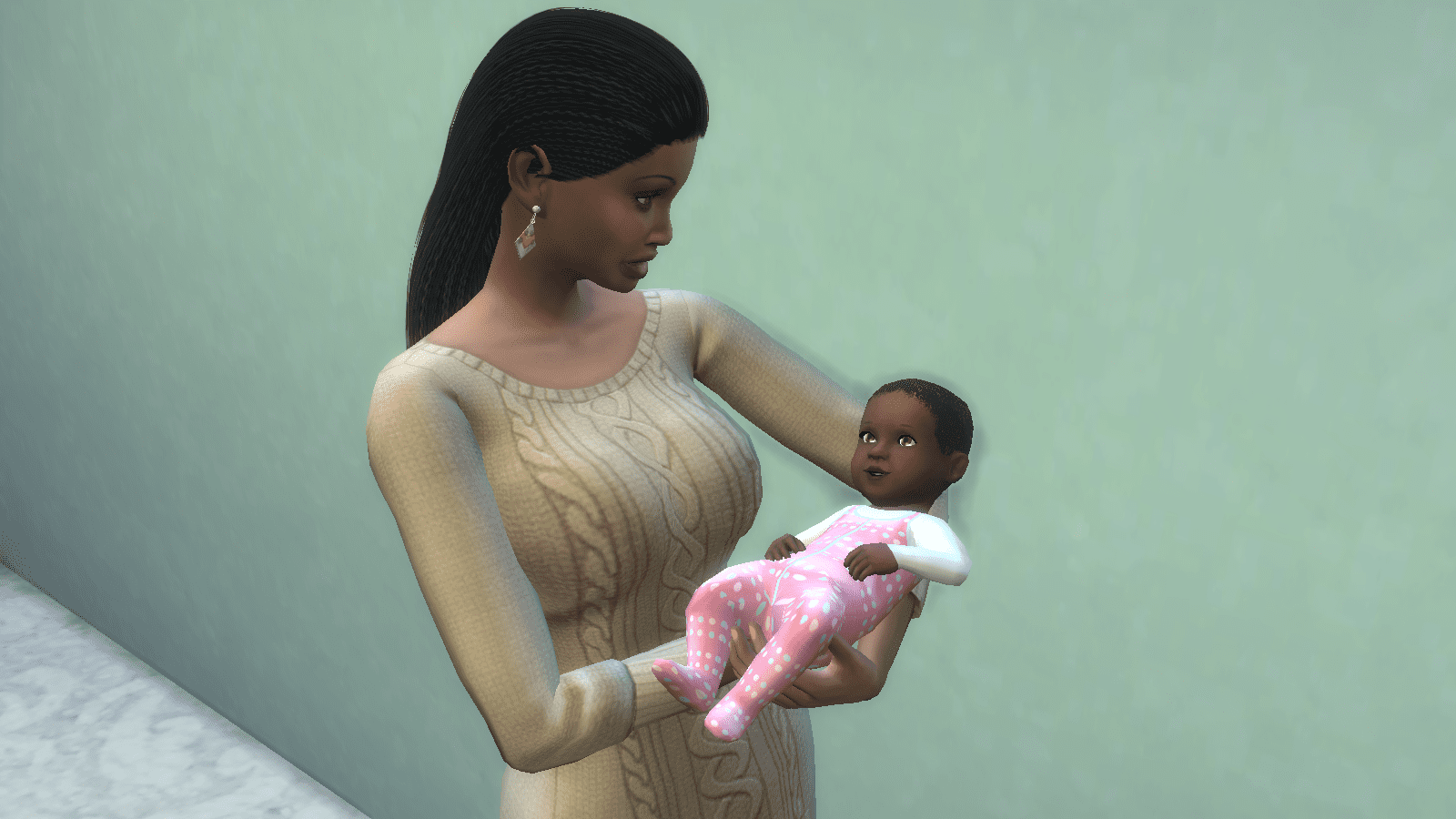 Kisha walks over to Maria’s bassinet.