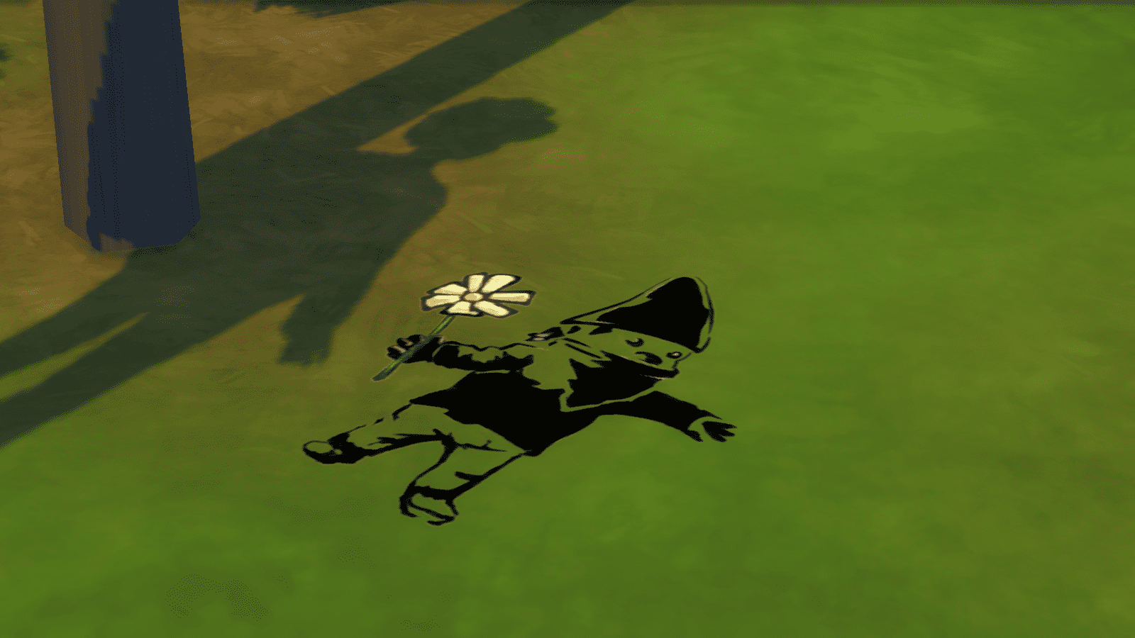 …Someone has spray painted Banksy style art and other forms of graffiti all over the grass around someone’s house.