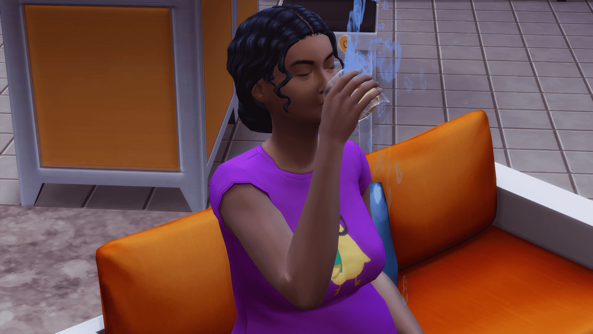 (Note: I let curiosity get the best of me! I saw the Insta-Lean aspiration reward and I’ve always wondered how it works…and now this. I would never make a sim this thin on purpose. I’d never support or encourage the use of a so-called miracle weight loss drink in real life! This should be interesting…)