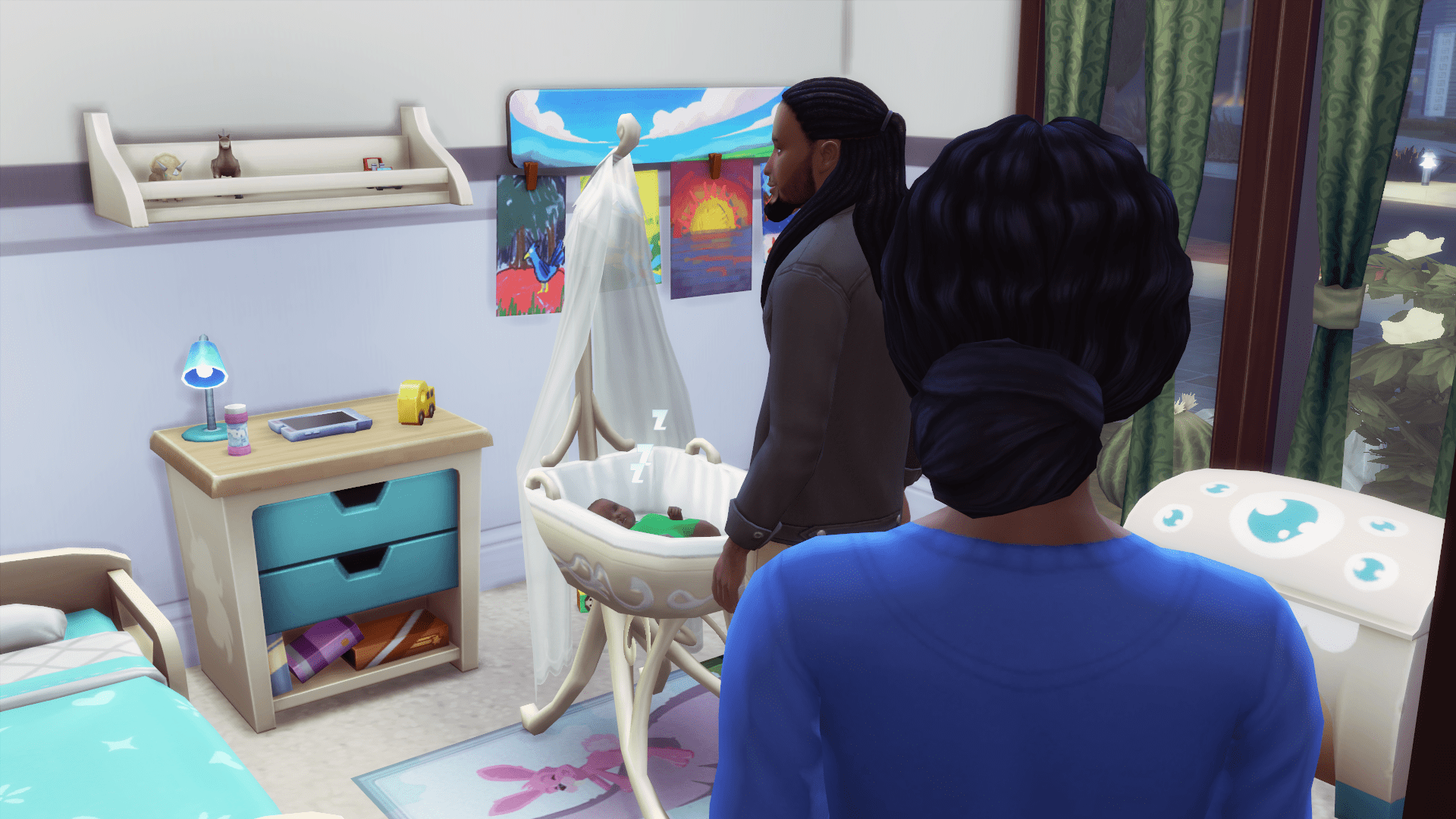 Peri is up when he finally awakens. She follows his cries to his new bedroom and peeks in at him.
