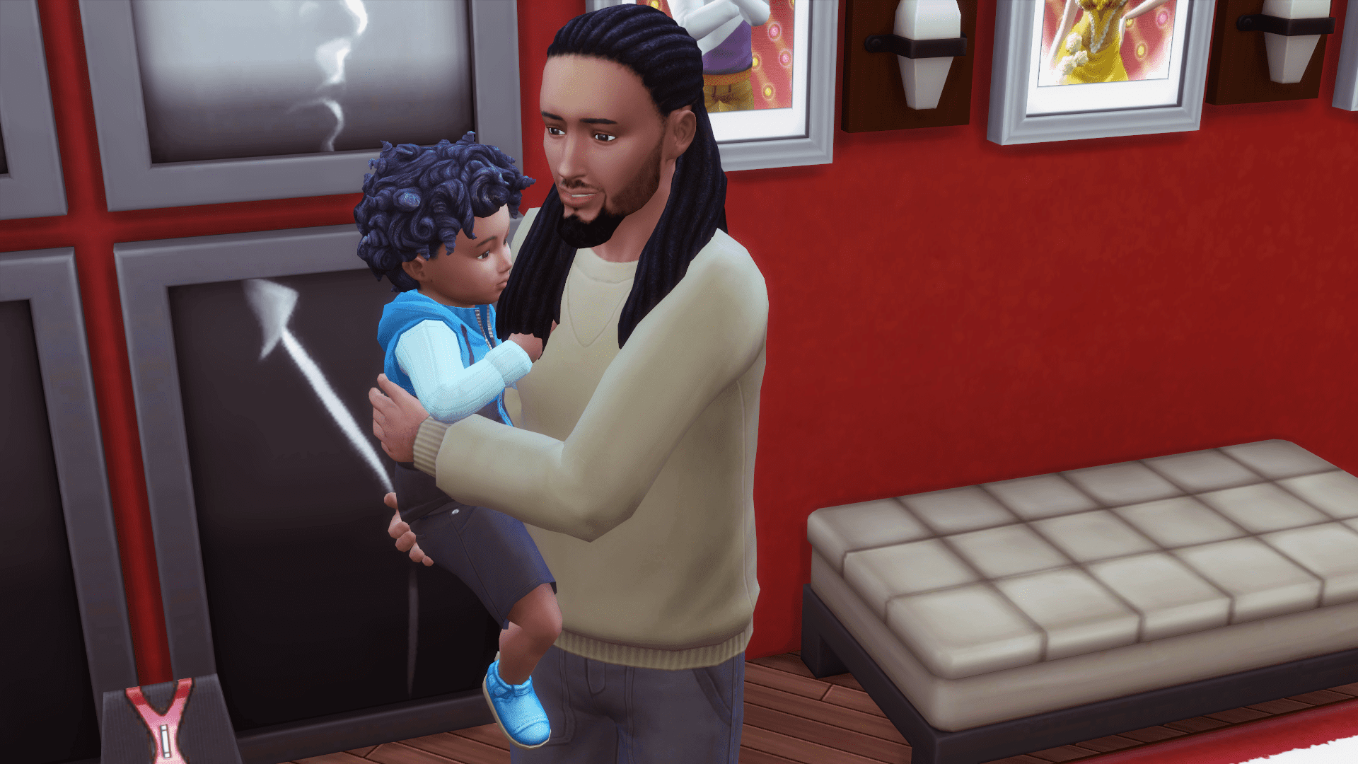 Realizing that we’ve been up all night and it’s technically the next day…we decide it’s time to age Merit up. Merit becomes a toddler with the Angelic Aspiration. Q takes some time to help him take his first steps.