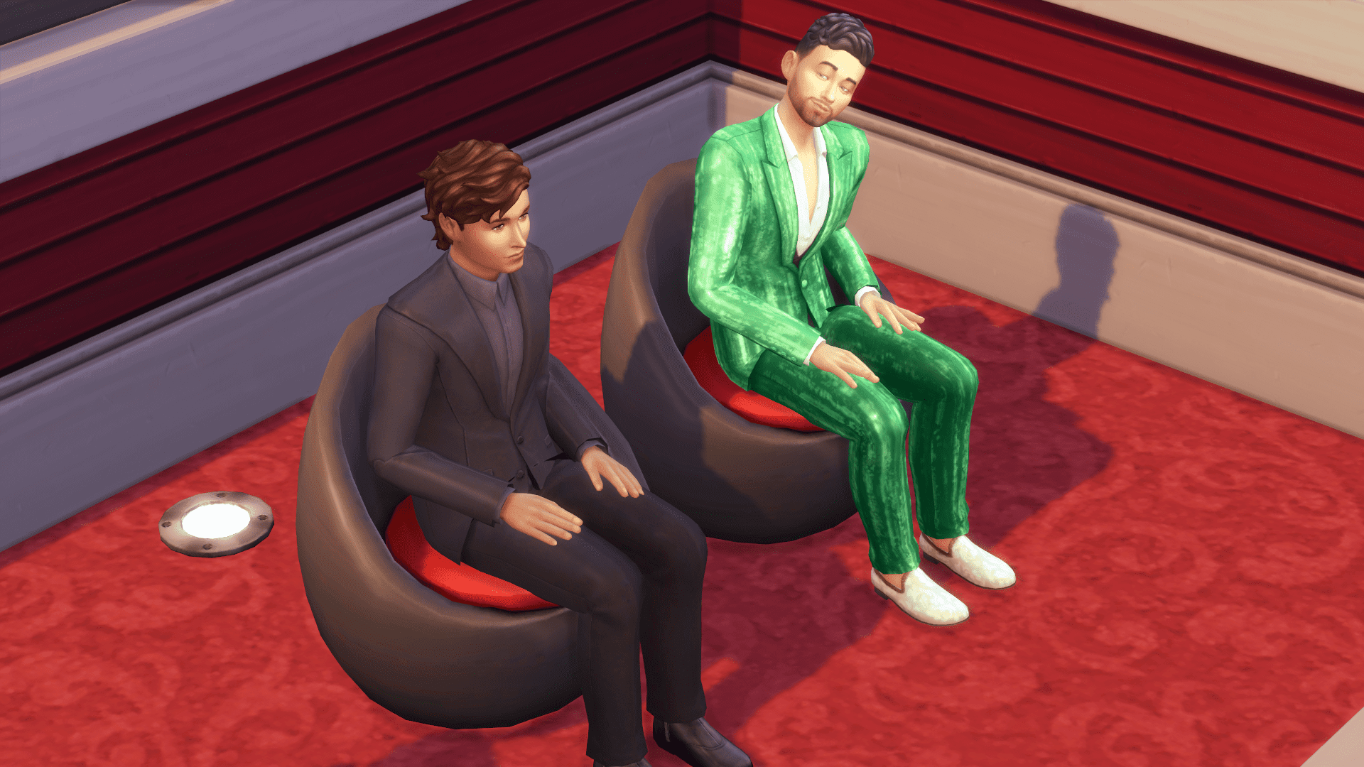 Axel sits quietly waiting, while Luiz checks his phone to pass the time.
