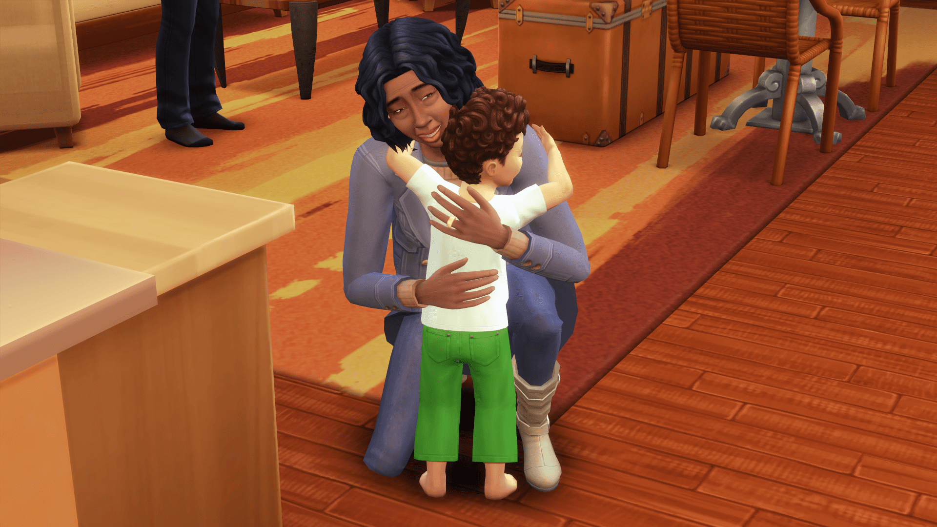 Mama is scheduled to return to Oasis Springs this morning, but before she leaves, Kai ages up to a toddler with the Charmer aspiration. I’m not surprised to see that he has his father’s eye and hair color.