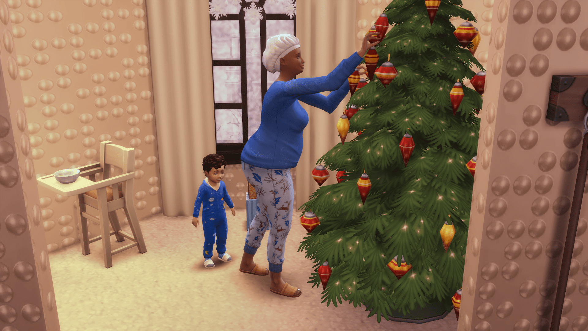 I sit Kai down in his highchair and give him his breakfast, and then I get started on decorating the tree.