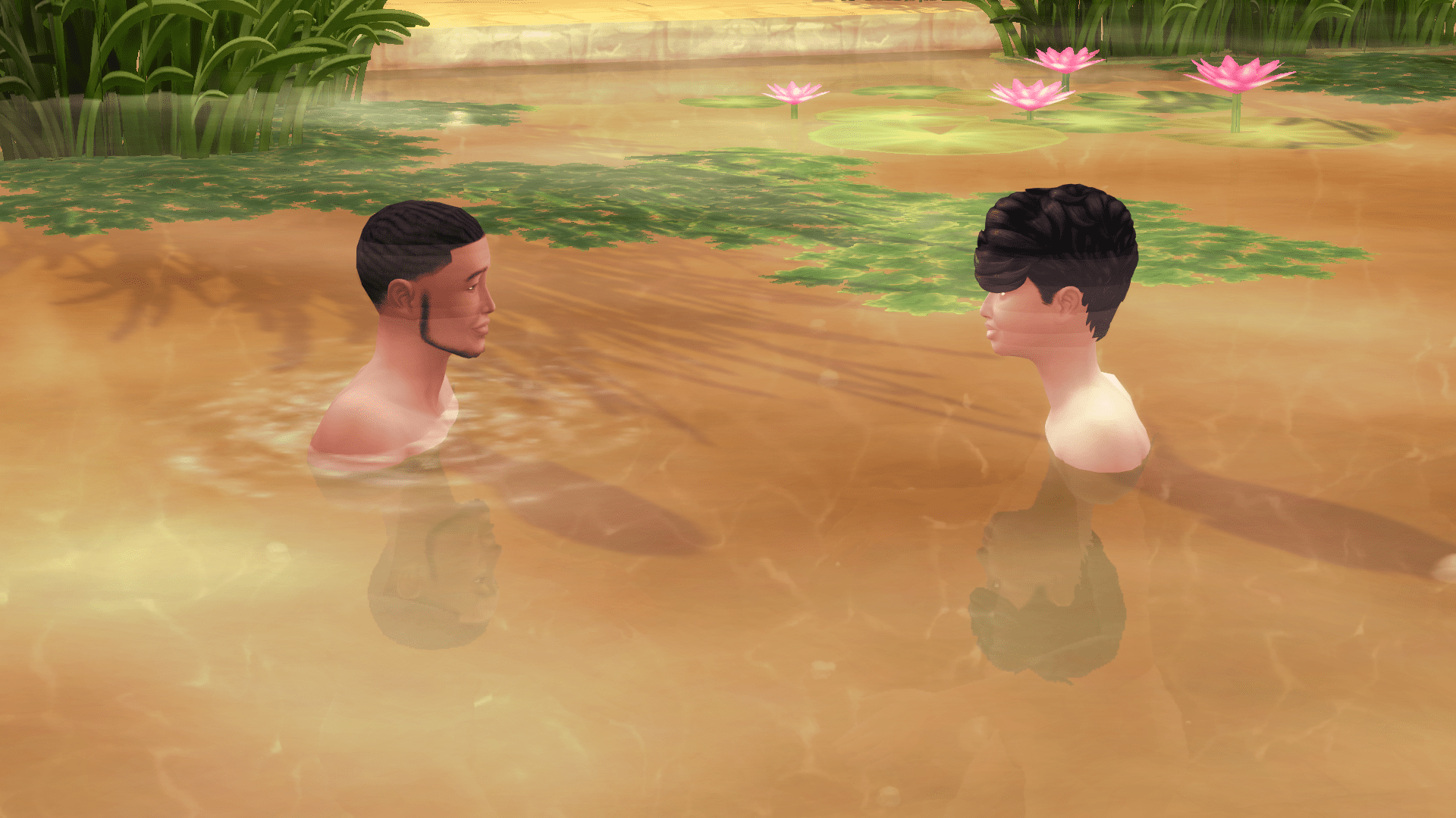 We’re both okay with the idea of skinny dipping. But we’re not quite familiar enough to just strip down in front of each other and just go for it. I hide behind a bush and slip into the water, while he undresses with his back turned and hops in.