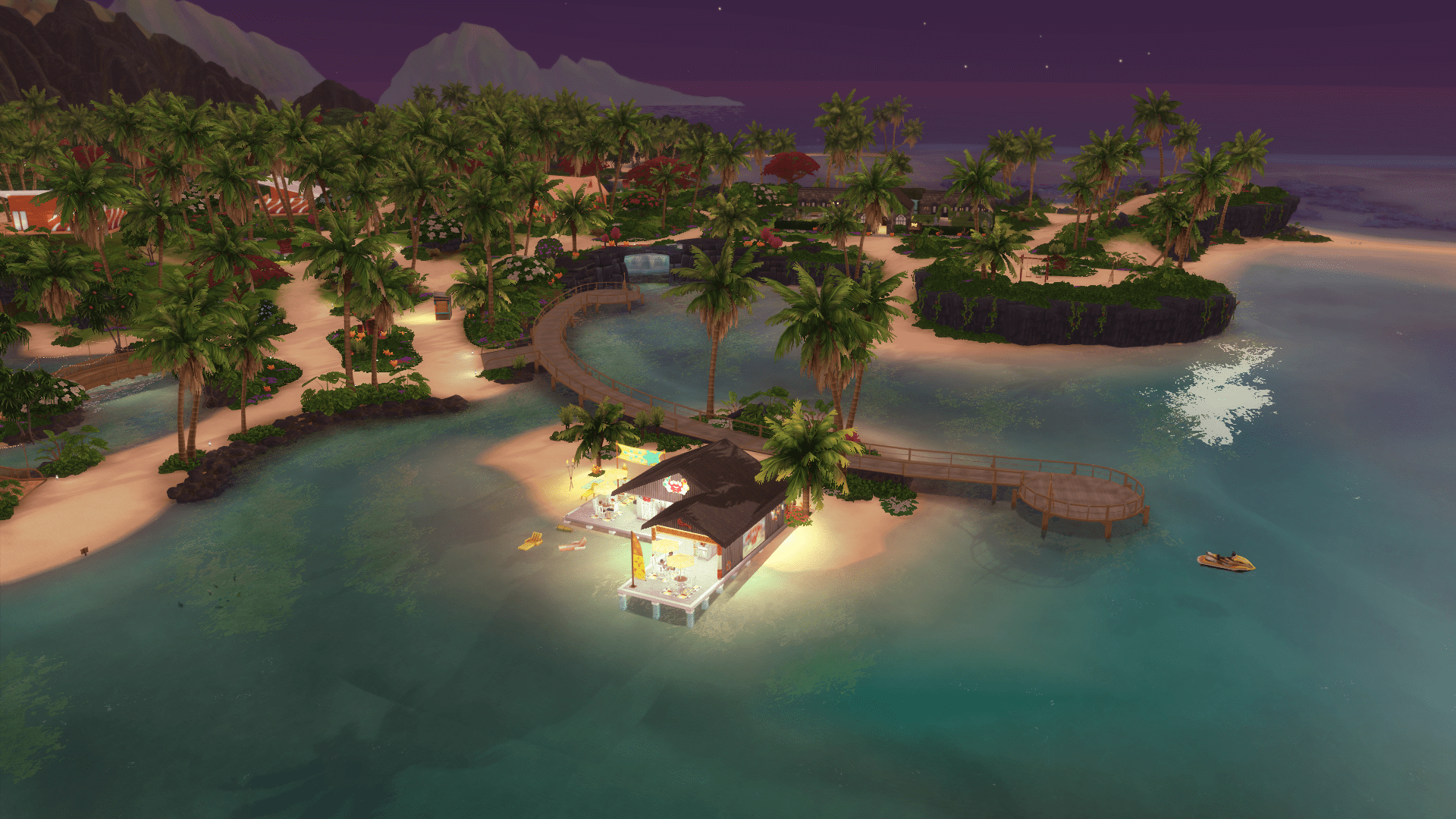 The sun is down when Kai and his grandparents arrive at the Beach Shack Bar & Grill. They are seated near the bar. The waitress comes to quickly take their order.
