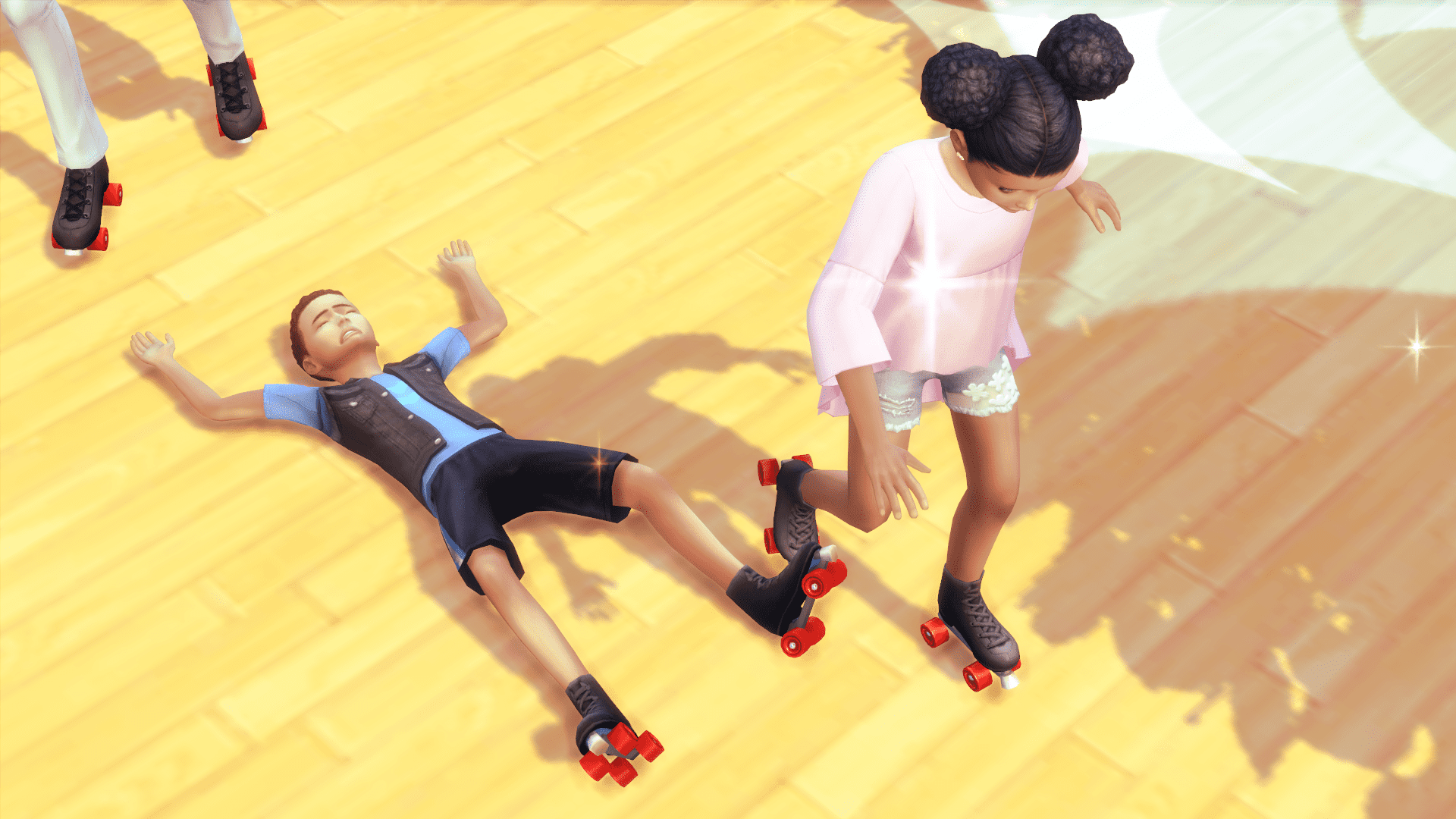 While Jay is safely inside, enjoying some time away from his sisters, Merlin and the girls continue skating. Merlin feels extra confident, so he tries out a trick, resulting in a pulled lower back muscle. Like Jay, it’s time for him to leave the skates alone for a bit.