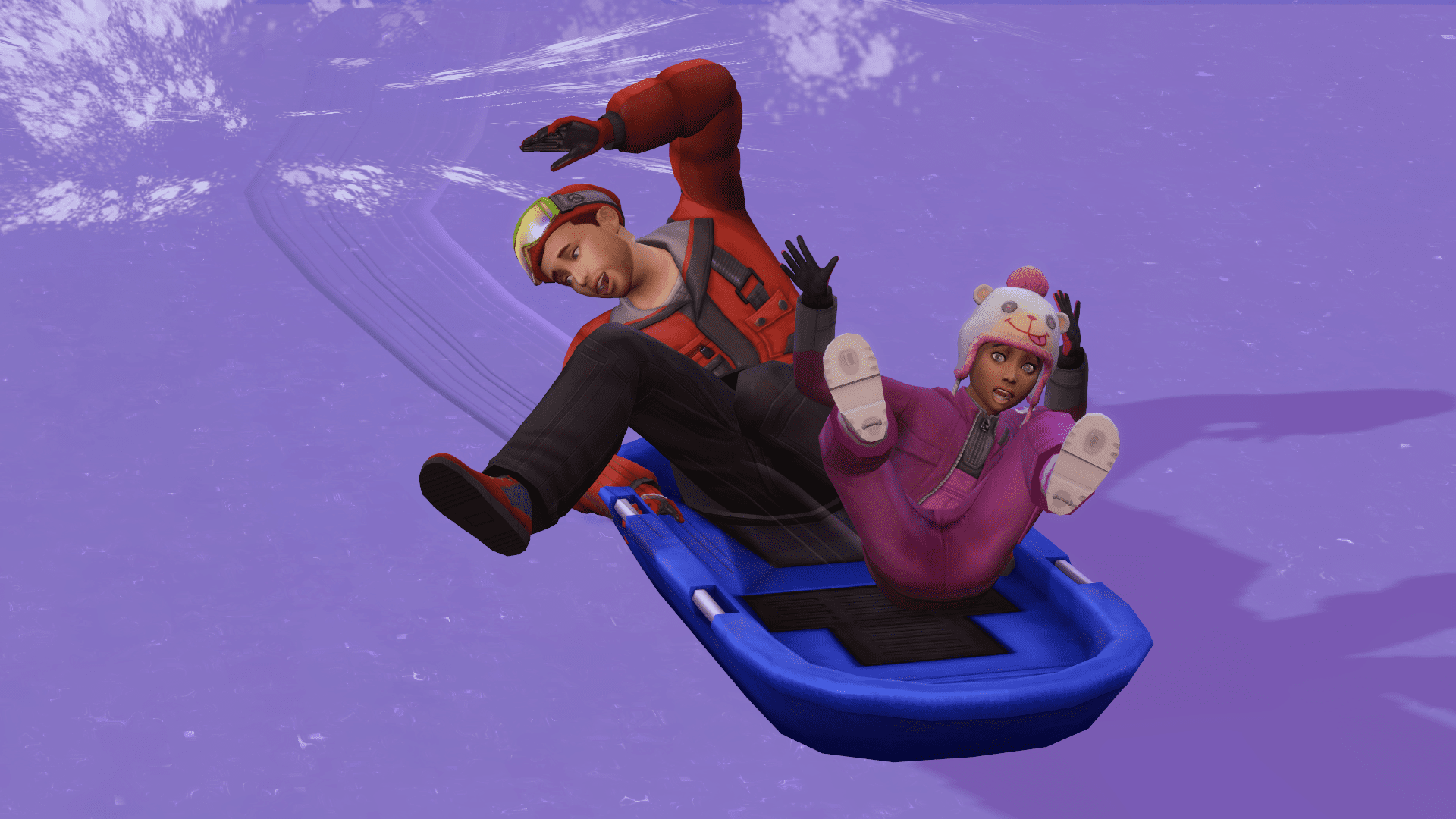 Merlin and Jay enter the sled, and then Merlin slowly pushes them closer to the slope. They hit the edge just right, and the sled slides down fast. Unlike his sister, Jay is pumped up the whole way down.