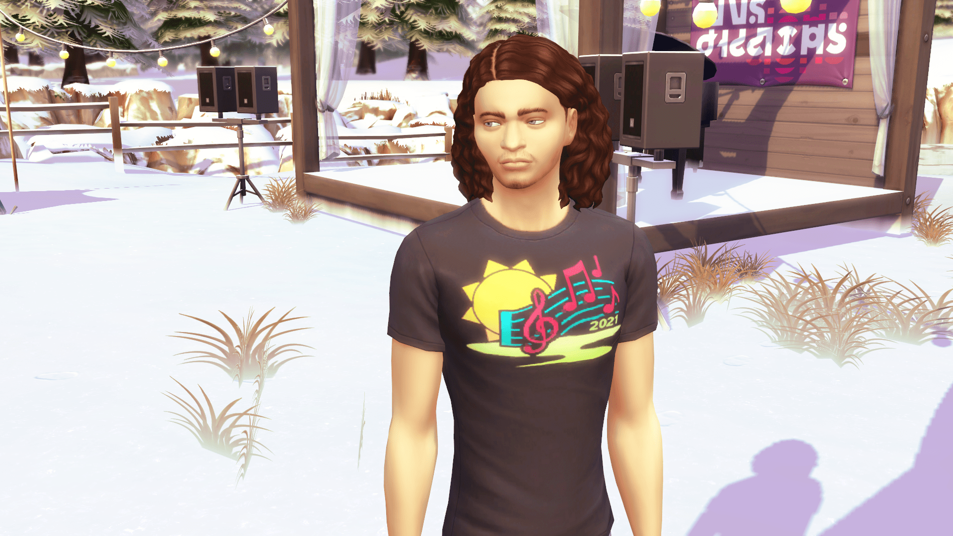There’s snow coming down when Kai and his friends arrive at the festival in Willow Creek.