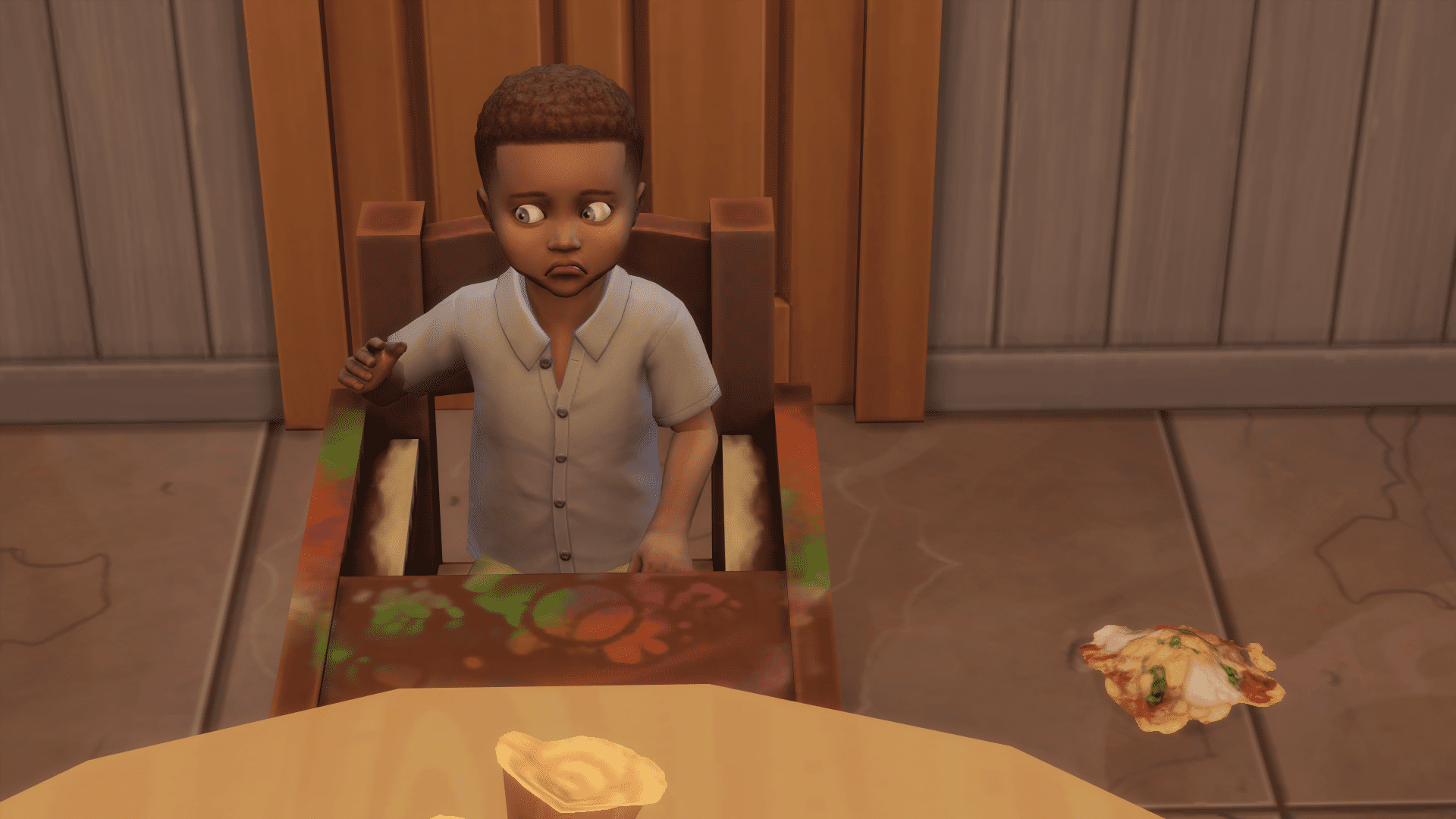 Melisa: *stern tone* That’s a no-no, Dubbie! We don’t throw our food on the floor.