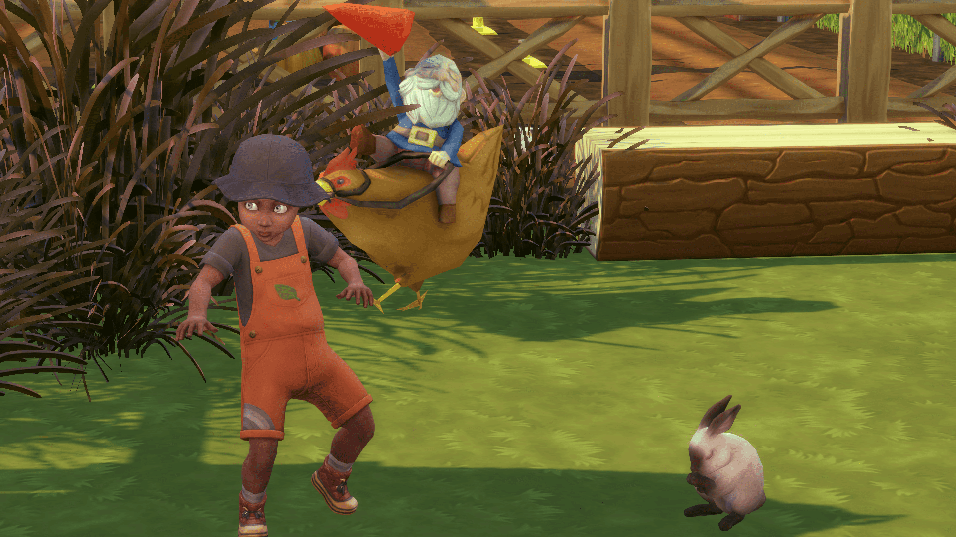 I change Dub into overalls and a hat to match mine, and we go outside.