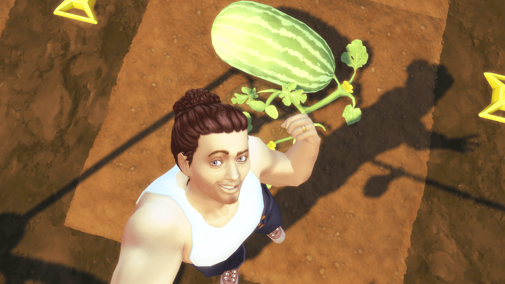 While Mase entertains the chickens, I step into the garden and snap a selfie with my perfect melon. I keep one for us and sell the rest. We make a nice little profit off of them.