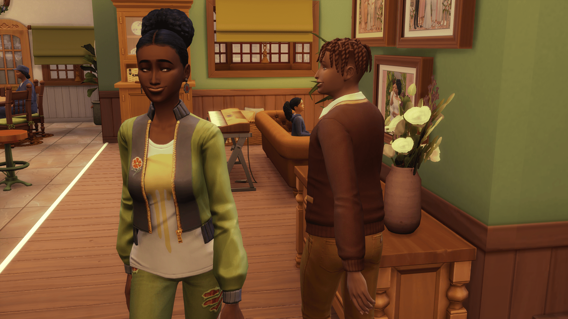 Perla gets up to leave as Dub descends the stairs.