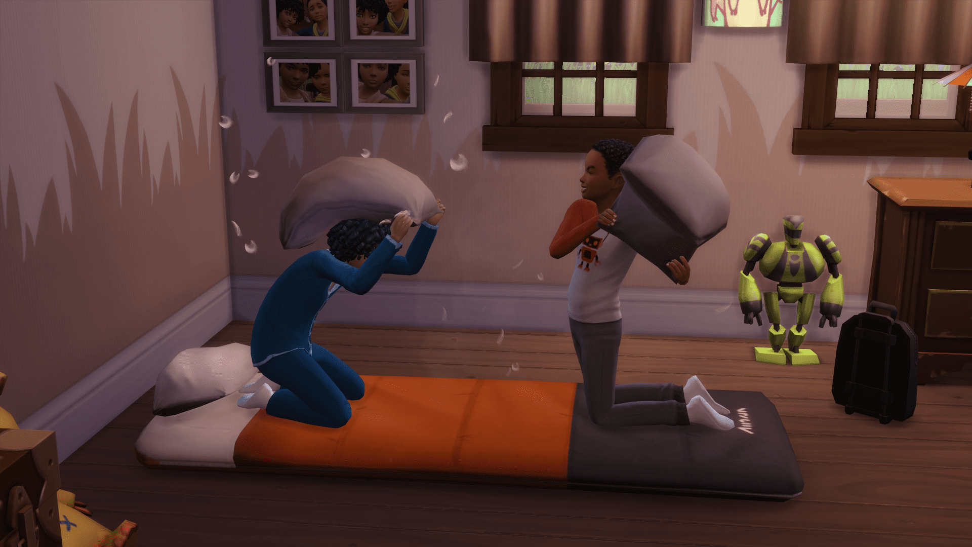 Kai: Guys! No more pillow fights. It’s time for bed.