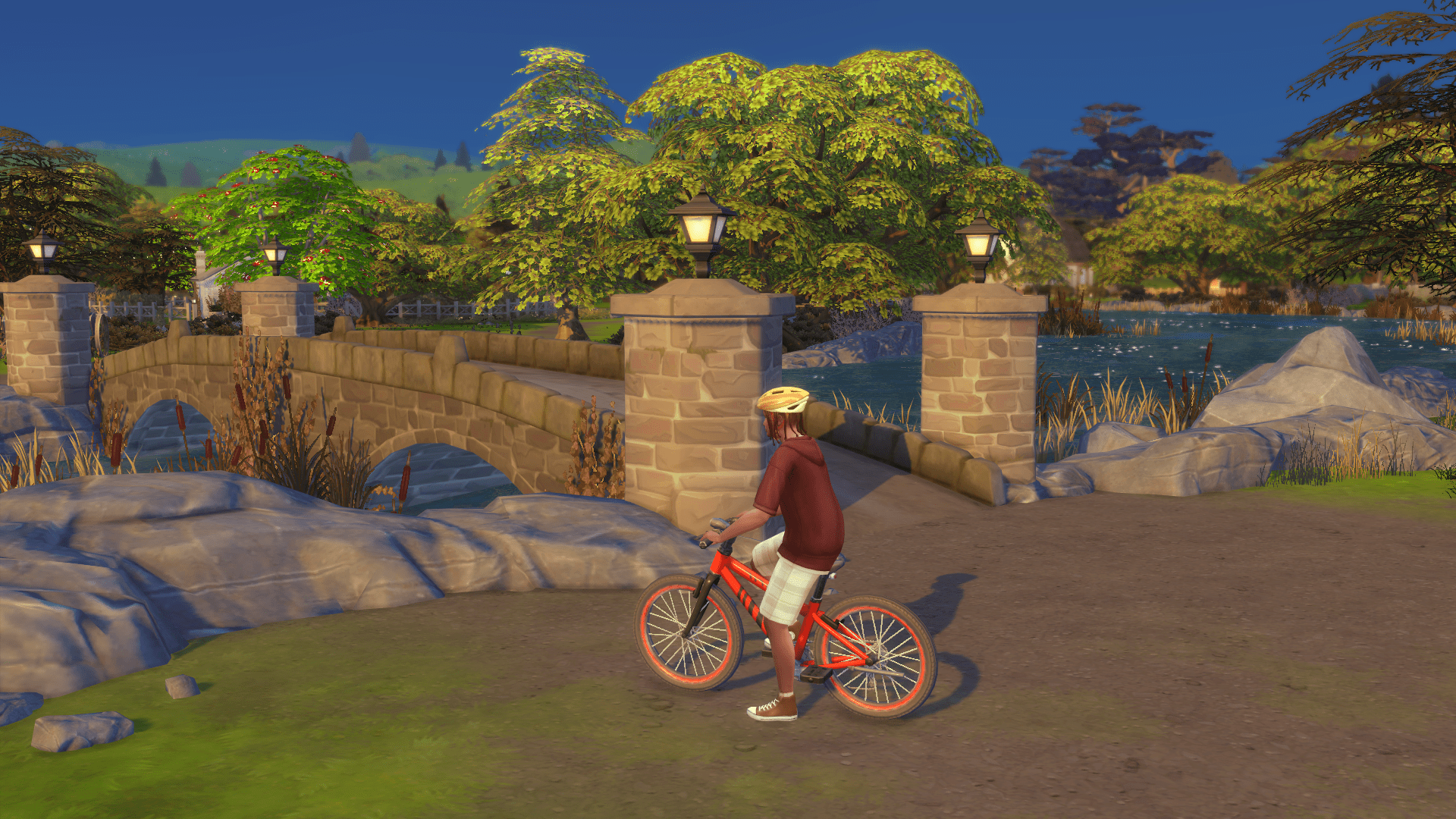 Dub thinks about the beauty of this small town and tries to come up with some good reasons why he might want to stay here. He even snaps a few shots and posts the best one to his Simstagram. Maybe if it gets a good reaction, he can post more photos of this beautiful place. Dub gives it some serious thought before hopping back on his bike.