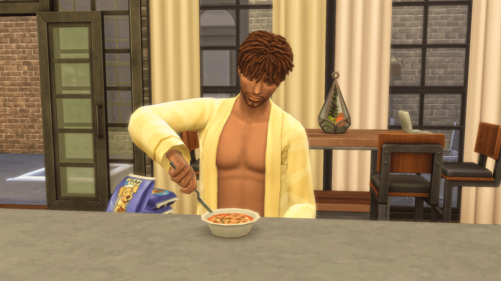 I wash my empty plate in the sink while Alisha and Jayden try a piece of the fruitcake they brought but obviously never tried. Judging by what I’ve seen so far, I don’t know if they are the type of people I’d enjoy hanging out with. There’s something odd about them. They both seem very assertive, almost to the point of being rude, but maybe that’s what people in this part of the Sim World are like.