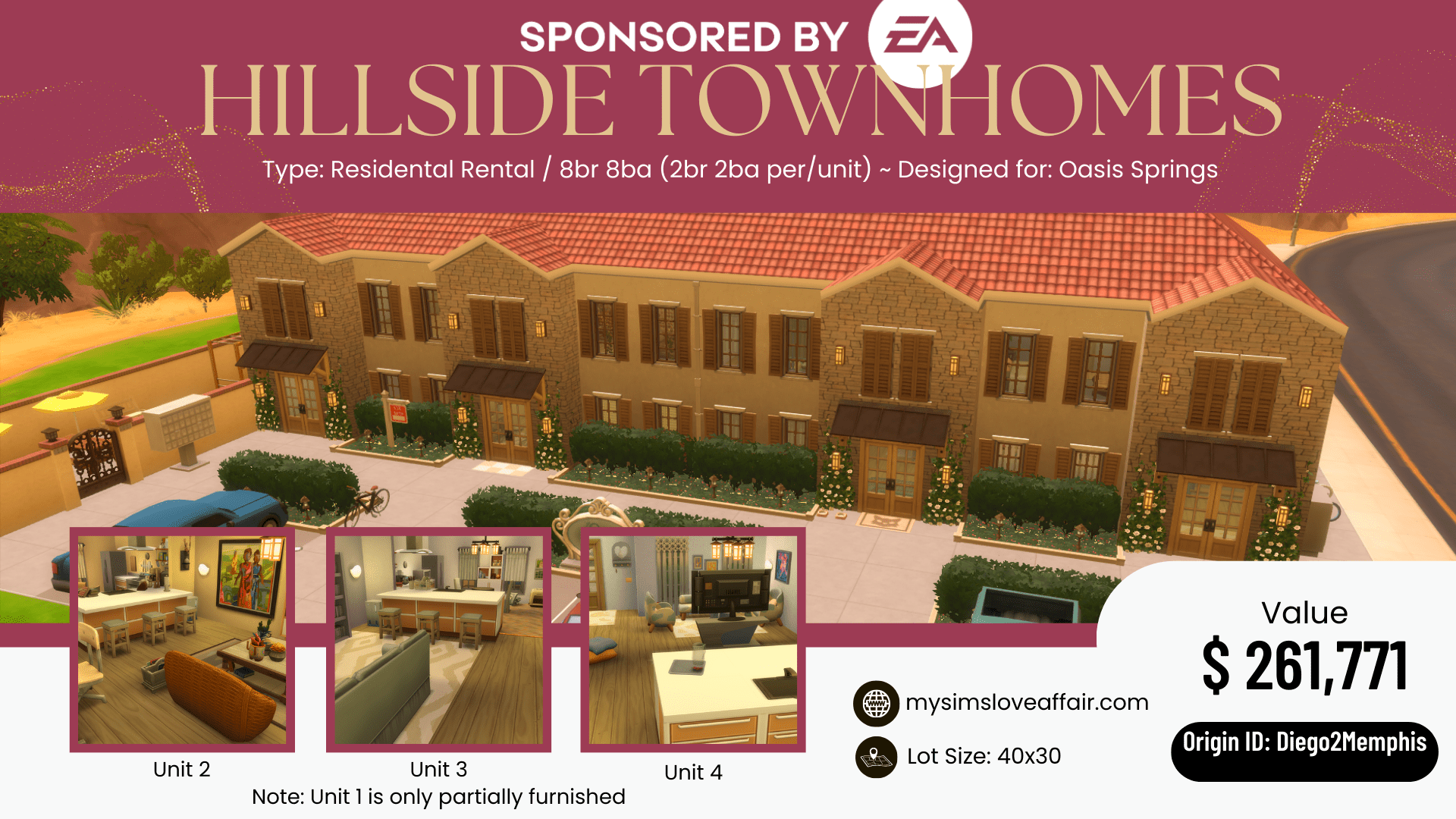 Here’s another build I was able to transform into a rental, thanks to EA. This building includes four townhomes, each with 2 bedrooms and 2 baths. Three townhomes are fully furnished. The last one includes bathroom and kitchen counters and fixtures. Includes washer & dryer, small community playground, and attached mini “backyards” with gardens for each townhome.
