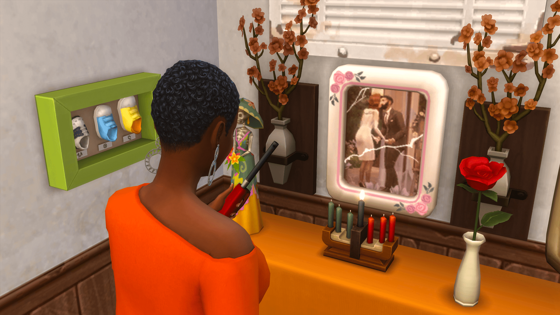 Maia takes a moment to light the candles in front of the picture before answering.