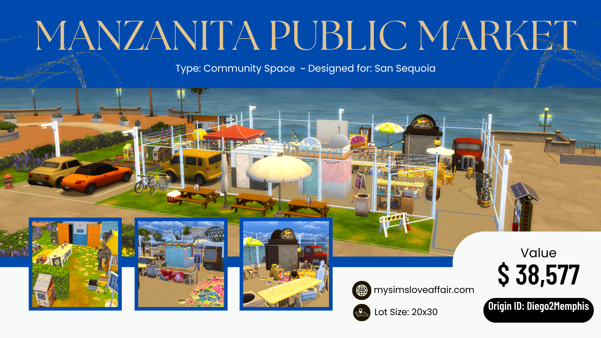 This Community Space functions as a Community Garden, Marketplace and a Maker Space (just download this same lot for each lot type). No CC, turn on bb.moveobjects.