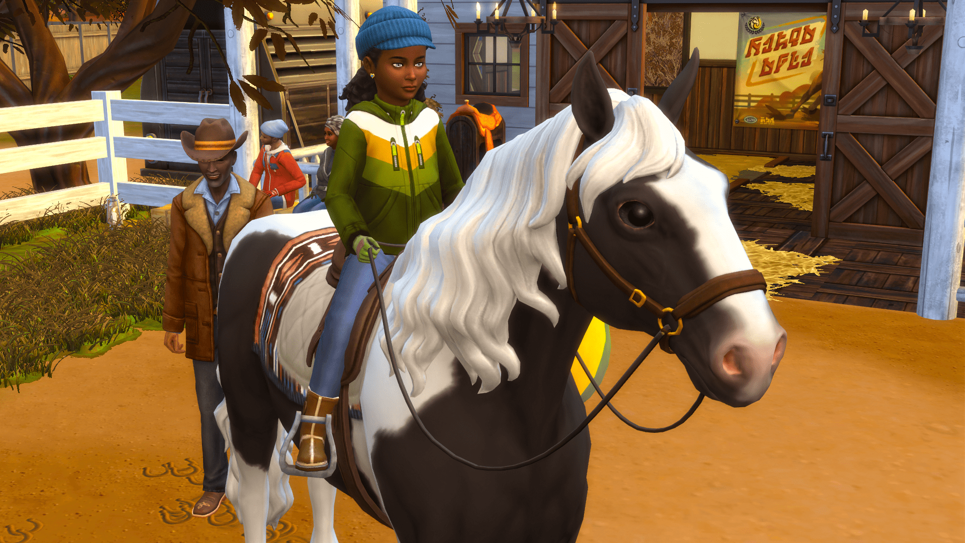 As we step back outside, Xavier explains how the ranch is entirely off the grid and relies on solar panels and dew collectors for power and water. Maia suddenly gasps, and I follow her gaze to see Tami sitting on the horse’s back.