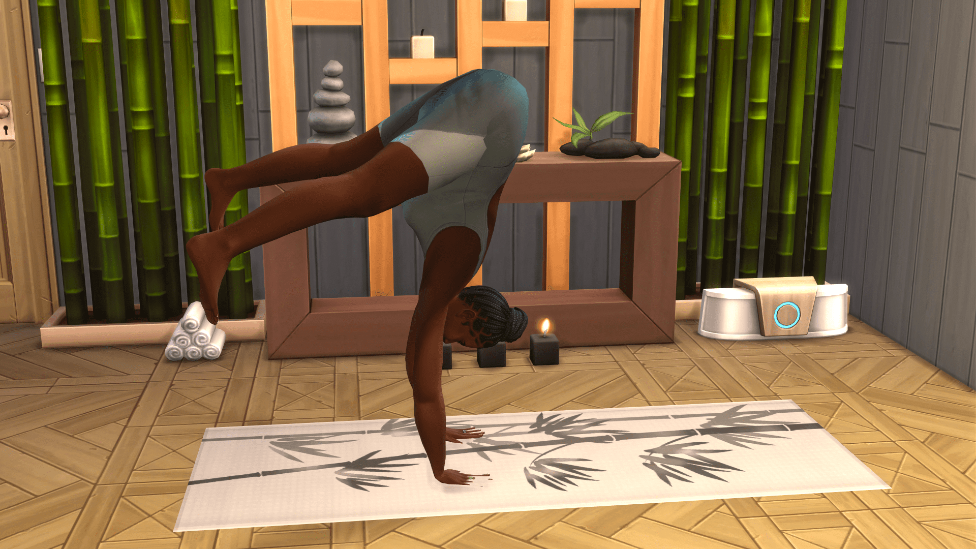 I hear music coming from Maia’s yoga room when I wake up. I walk down and peek my head in to check on her. Unfortunately, I’ve caught her in the middle of a challenging pose and my presence is just enough to distract her. She loses her balance and crumbles down on her mat, landing on her back. Ouch!